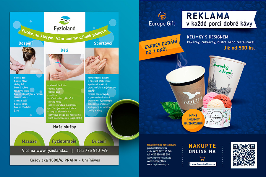 Vizitky, plakáty, letáky, billboardy, roll-up. Brožury, prospekty a katalogy. Obaly.