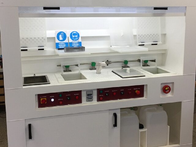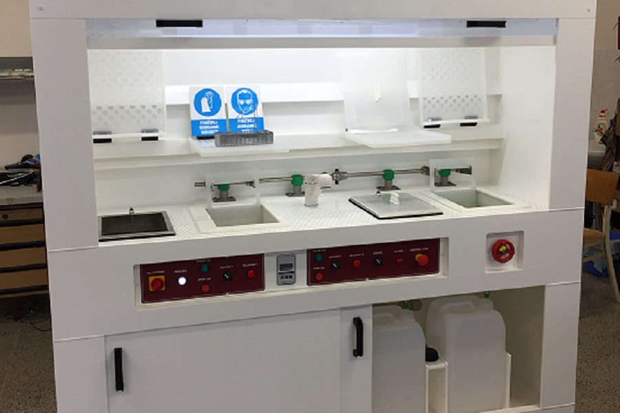 Společnost VOPP realizuje komplexní řešení mokrých procesů pro polovodičový a solární průmysl. Vyrábíme nová zařízení přesně podle požadavků zákazníka. Všechna zařízení zhotovujeme z kvalitních materiálů v celoplastovém provedení, které zajišťuje vysokou odolnost v agresivním prostředí.