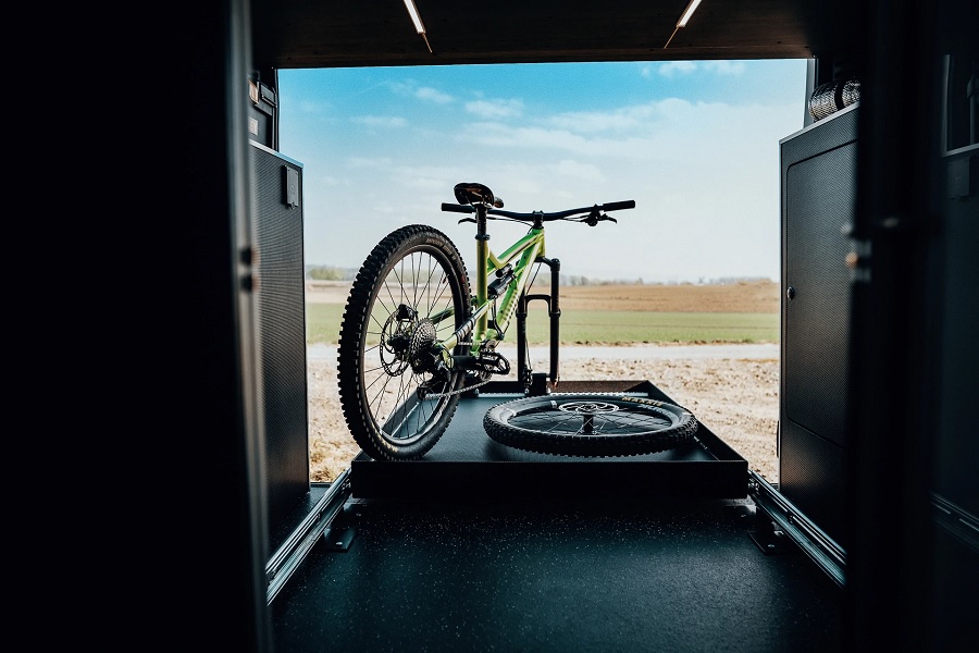 Prostorná vytápěná garáž s výsuvným dnem pro pohodlnou manipulaci a dostatkem prostoru pro Vaše cyklo mazlíčky a jiné rozměrné věci. Ze zkušenosti víme, že ne vždy je po výletu kolo vhodné rovnou uskladnit, proto máme v garáži připravený přímý výstup na hadici připojený na 100 l nádrž na vodu. A nebojte se ušpinit garáž, celá je pro tyto účely opatřena speciálním voděodolným materiálem. Stop stísněným prostorům! Díky umístění postele na elektrický posuvný systém Vám naše vestavba nabízí dostatek místa pro život i pro spánek. Inovace nás baví… Potřebujete nabít tablet, mobil nebo cokoliv jiného z USB? No problem! Přímo v obytném prostoru jsou přesně pro tyto účely nachystané USB zásuvky pro přímé připojení zařízení. Úsporné, ale výkonné RGBW LED osvětlení zaručí dostatek světla za všech podmínek a ruční intarze nábytku dodá interiéru jedinečný vzhled.